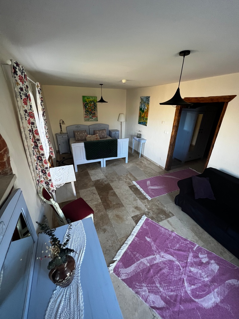 Przestronny apartament (30 m²) na parterze z widokiem na ogród. Wyposażony w bardzo duże łóżko podwójne, rozkładaną kanapę oraz łazienkę z wanną i prysznicem. Akceptujemy małe, średnie i duże psy oraz koty.